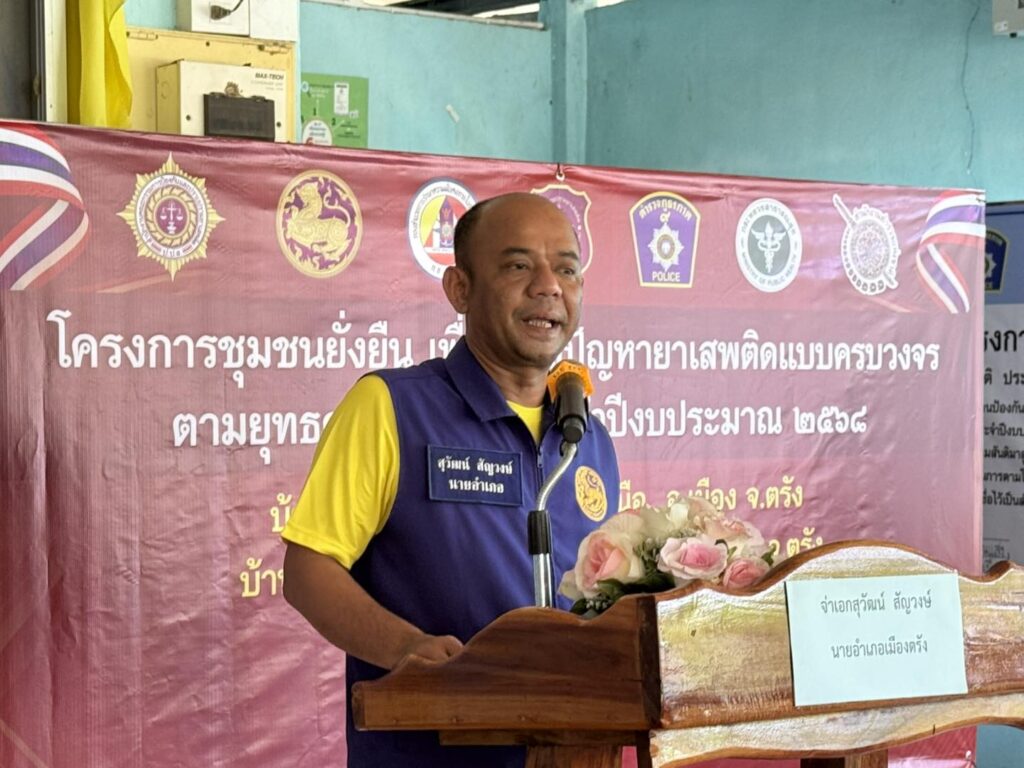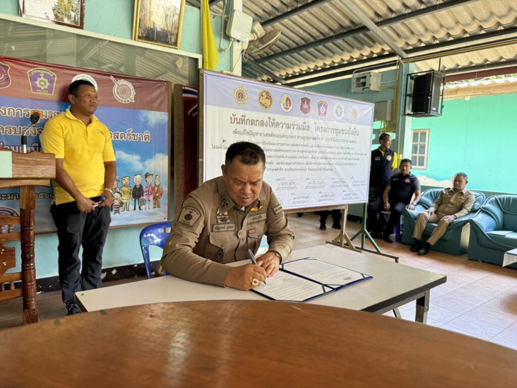 วันที่ 11 มี.ค. 2568 เวลา 13.30 น. สภ.บ้านคลองเต็ง โดย พ.ต.อ.ณัฐภาคย์ นุ้ยโดย ผกก.สภ.บ้านคลองเต็ง , พ.ต.ท.ดวิษ มณีสุวรรณ รอง ผกก.สส.สภ.บ้านคลองเต็ง พร้อมด้วยชุดปฏิบัติการชุมชนยั่งยืน สภ.บ้านคลองเต็ง เปิดโครงการชุมชนยั่งยืน เพื่อแก้ไขปัญหายาเสพติด แบบครบวงจรตามยุทธศาสตร์ชาติ ประจำปีงบประมาณ 2568 ณ ศาลาประจำหมู่บ้าน บ้านนางอ ม.10 ต.นาท่ามเหนือ อ.เมืองตรัง จ.ตรัง โดยมีชาวบ้าน, อสม.,ผู้นำระดับต่างๆตลอดทั้งครู-นักเรียน เข้าร่วมพิธีเปิด จากนั้นนายอำเภอเมืองตรัง ได้ลงนามบันทึกข้อตกลงความร่วมมือ (MOU) กับภาคีเครือข่าย อาทิ ผกก.สภ.บ้านคลองเต็ง, ปลัดอำเภอเมืองตรัง, นายก อบต.นาท่ามเหนือ, กำนัน ต.นาท่ามเหนือ, ผอ.รพ.สต.บ้านนางอ, และผู้ใหญ่บ้าน 2 หมู่บ้านเป้าหมาย คือ หมู่ที่ 10, 11 ต.นาท่ามเหนือ นับเป็นจุดเริ่มต้นที่ดี ในการร่วมแก้ไขปัญหายาเสพติดในชุมชนให้สำเร็จนำความสุขกลับคืนสู่ชุมชนต่อไป โดยมี จ่าเอกสุวัฒน์ สัญวงษ์ นายอำเภอเมืองตรัง เป็นประธาน